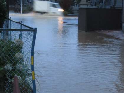 ↓ 隣の校区では、道路の冠水した箇所がありました。