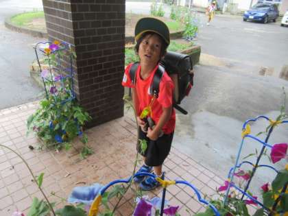 アサガオや置き石を進んで片付けていました。