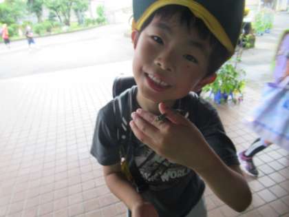アマガエル? を見つけたようです・・・