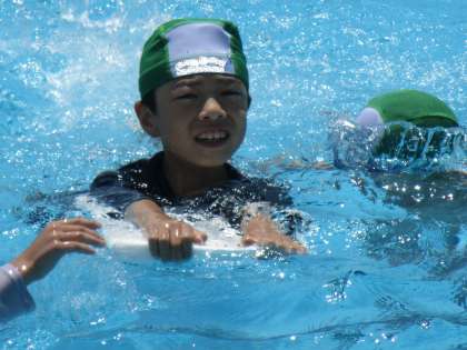これまでの学習を生かし、「チャレンジわざ7」に挑戦しました。「ぶくぶくぱっ」やもぐったり・・・上達しましたね!