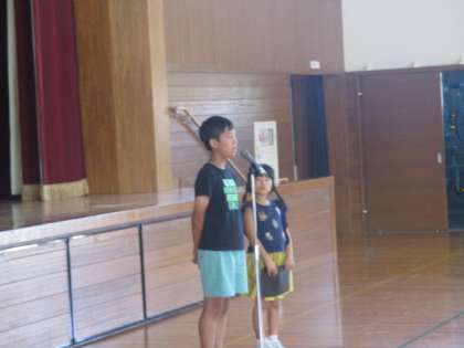 6年生 終業式 公開日 2023/07/24 更新日 2023/07/24 6年生 終業式で、1学期のがんばり発表をしました。 6年生の役割の大切さが感じられる、よい発表でした。 式の後は、全員で片付けをしました。 「学校を支える」6年生の姿が素敵でした。 2学期もみんなで学校をつくっていきましょう。