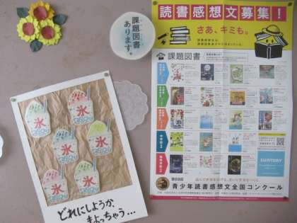 図書室の掲示から 公開日 2023/07/31 更新日 2023/07/31 3年生 毎月、季節にあった「掲示」がされています。 今は、「夏休みバージョン」です。 本を読んだ感想と自分のリアル体験とを重ね合わせて書く「読書感想文」に挑戦してみるのも、いいかもしれませんね。 ご家庭でも「本と仲良し」を進めていただけると、うれいしです。 また、「市立図書館 水橋分館」の利用も、ぜひ。 1回に10冊まで、2週間借りていられます。