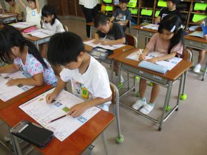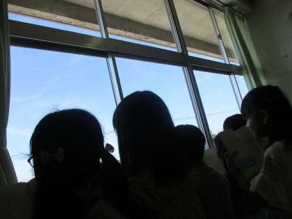 青い空に向かって音読したり、かたかなを書いたり・・・ 国語や算数の学習もスタートです。