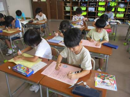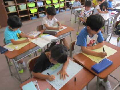 詩を丁寧に書き写しています。 2学期3日目。がんばる子供たちです。