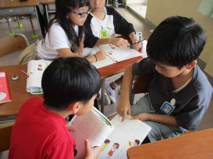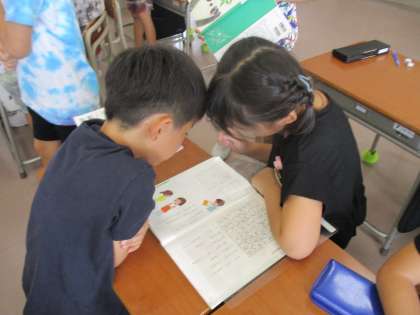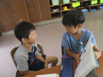 「どんな言葉がかくれているかな?」 今日は、自分でもつくってみました。友達と問題を出し合っています。