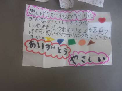 友達の素敵なところを見つけて、手紙にして渡すのだそうです。