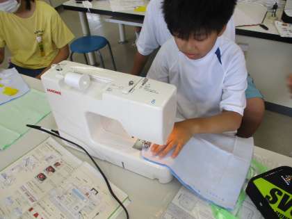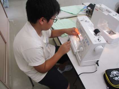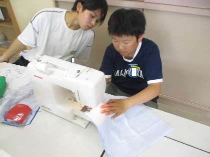 クッションをつくりはじめました。 ミシンで縫い合わせています。