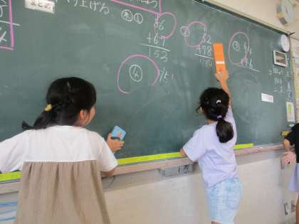 2学期が始まって2週間。新しく決めた一人一役も板についてきました。今日は、黒板消し担当です。