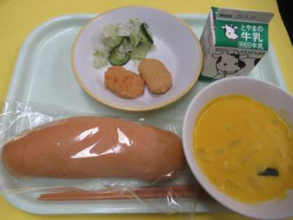 ・えごまドレッシングサラダ ・かぼちゃポタージュ