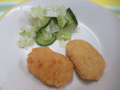 今日は、子供たちの大好きな「チキンナゲット」ですね。