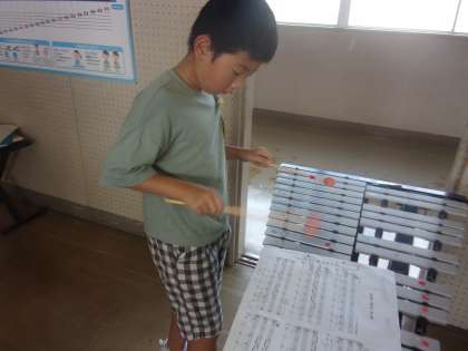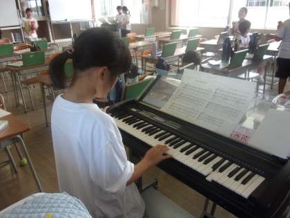 歌を元気に歌ったり、楽器を何回も繰り返しひいたりするなど、一生懸命に練習しています。