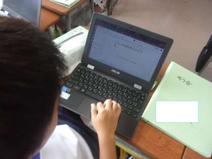 自分たちで調べた「水橋のステキなところ」について、クロームブックを使ったり、パンフレットを作ったりするなどして、まとめています。