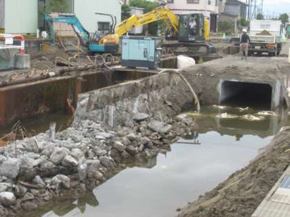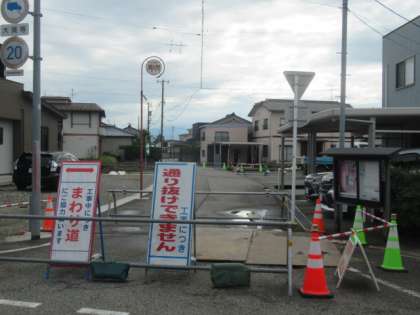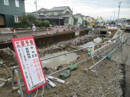 本校の東側、水橋西部地区センターの北側にある用水を暗渠にする工事が始まっています。通行止めの箇所もあります。工事は、来年の春まで続くそうです。