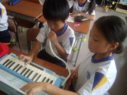 学習発表会で演奏する曲を音楽の時間に練習しました。
