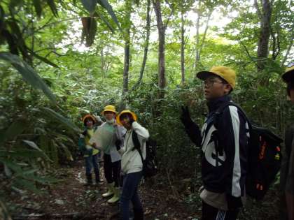 林の中、森の中へ分け入って、巣箱のようなポイントを探します。