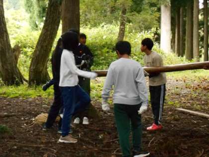 太くて重い丸太を協力して運び・・・