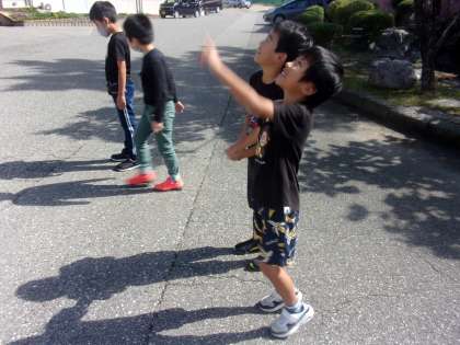 今日は、晴れていたので「かげおくり」をしました。