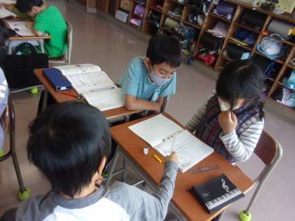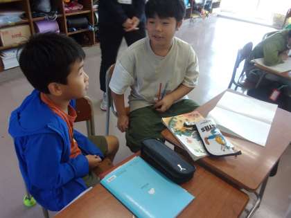 考えているうちに、「ここはこうじゃない?」「こうするんだよ。」と教え合いや話し合いがはじまっていました。