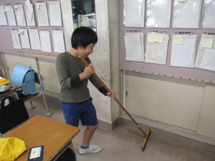 委員会から学級に帰ってきた子供たちが、教室をほうきで掃いてくれました。自分にできることを見付け行動する姿、ほんと素晴らしいですね。