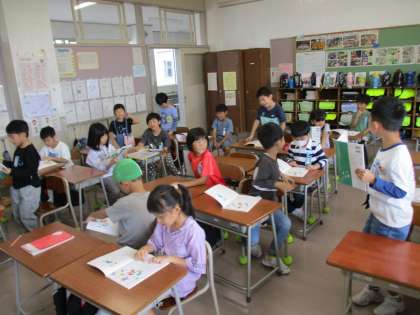 今日から「下」の教科書です。「ともだち」の詩を元気いっぱい音読しています。