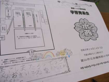 1年生 学習発表会に向けて2 公開日 2023/10/04 更新日 2023/10/04 1年生 「元気いっぱいで演技するよ」 「みんなに笑顔になってもらえるようにがんばるよ」 プログラムにメッセージを書き添えました。どうぞ、お受け取りください。