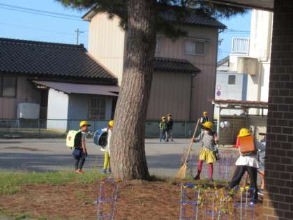 朝や大休憩に前庭を掃き掃除してくれる子供たちがいました。