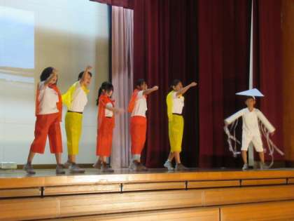 ヒーローや怪人の様子、ヒーローにあこがれる子供の気持ちを考えて演技しました。