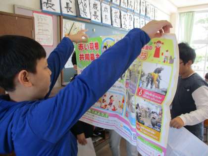 「わたしたちにできることから始めよう〜よりよい学校・地域を目指して〜」というテーマで学習しています。追究したい課題ごとにグループで活動しています。取り組みたい課題が見付かっているようです。