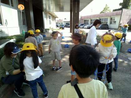 たねの収穫も終盤になり、今日は、前庭でリース作りです。できあがったものを見ると、朝顔のお世話を頑張った子供たちへのご褒美でしょうか。王冠のような素敵なリースになりました。