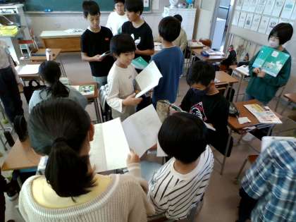まとめたノートを友達と見せ合い、よさを自分の取組に生かそうとしています。