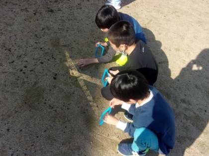 太陽の光を鏡ではね返すと、どんな風に光が進むのかを実験しました。