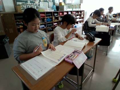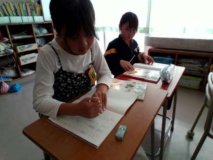 昨日、書写の時間に見やすいノートの書き方を学習しました。早速今日の国語の時間に学んだことを生かして、見やすいノートづくりに努めている子供たちがいました。