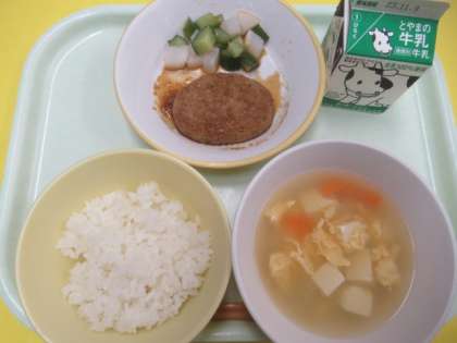 2日(木)今日の献立 公開日 2023/11/02 更新日 2023/11/02 給食室 ・ごはん ・牛乳 ・和風ハンバーグ ・かぶのサラダ ・卵と豆腐のスープ ※11時45分、検食終了。異常ありません。 今日も美味しく出来上がっています。