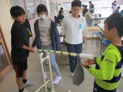 力点・支点・作用点の位置を変えながら実験し、グループでまとめを考えました。