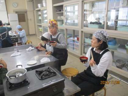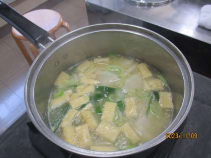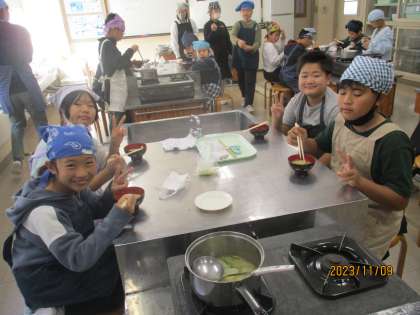 そして、味噌汁が出来上がりました。みんなでおいしくいただきました。