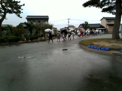 6年生が出発しました。あいにくの雨ですが、貴重な体験ができるよい機会です。たくさんのことを学んできましょう。
