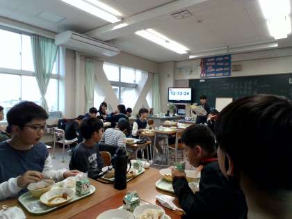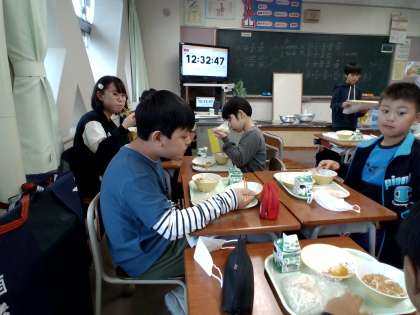 今日の献立はみんなに人気のソフト麺、大学芋です。もりもり食べています。来週は「たべキリン週間」です。感謝の気持ちでいただきましょうね。