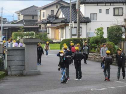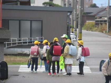 横断歩道付近で「おはようございます!」「Good morning!」の声が響きます。