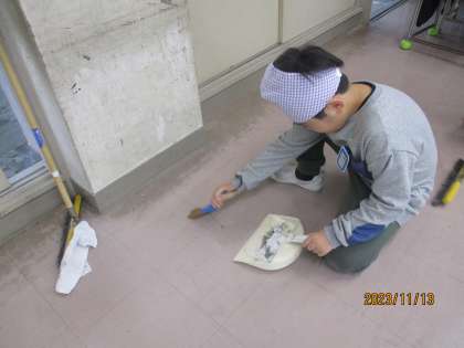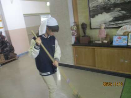 月曜日の朝は、朝清掃の時間です。子供たち、がんばっています。