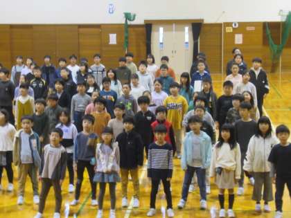 全校 “学び舎のうた(校歌)”収録 公開日 2023/11/17 更新日 2023/11/17 3年生 本校の卒業生でフランス(パリ)在住の平井監督の映画「ゆ」。 その中で、登場人物が銭湯の中で口ずさんでいた本校の校歌。 その校歌を、全校みんなで「天瀬(水橋)の川」(歌詞1番)や「立山連峰」(歌詞2番)をイメージ豊かに歌いました。 ちなみに、本日17日(金)の新聞で、映画「ゆ」が名誉ある賞を授賞したとの報道・・・偶然にしては、できすぎ?
