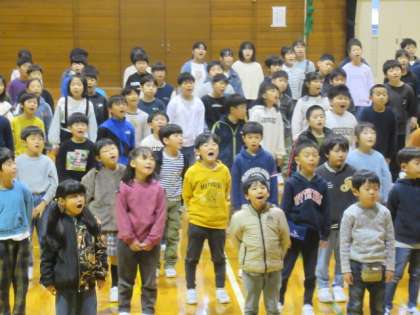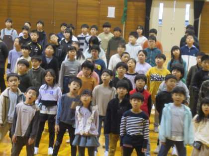 全校で、心と声を合わせて歌いました。放送が楽しみですね。