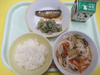 20日(月)今日の献立 公開日 2023/11/20 更新日 2023/11/20 給食室 ・ごはん ・牛乳 ・いわしの生姜味 ・ゆかり和え ・五目うどん ※11時45分、検食終了。異常ありません。 肌寒い時期、温かいうどんが美味しいです。