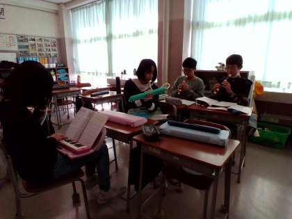 「雨のうた」のパート練習に取り組んでいます。教え合う姿が素敵です。