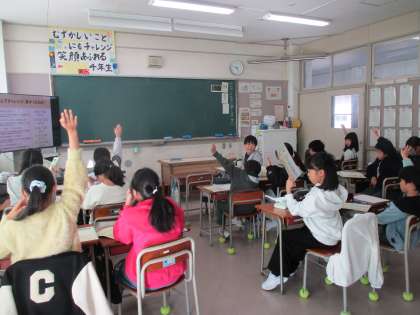 夏休みに取り組んだ環境チャレンジ10を振り返りながら、環境問題について学びました。今日はSDGsについて、くわしく教えていただきました。