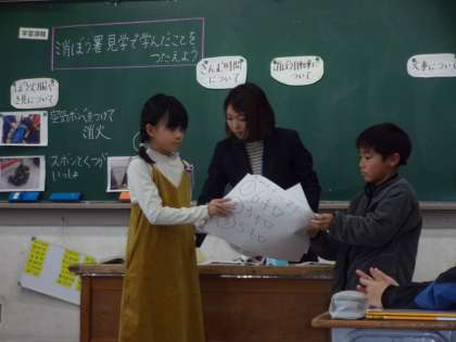 消防署で学んだことをクイズにまとめ、お家の人に発表しました。