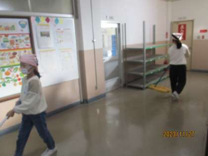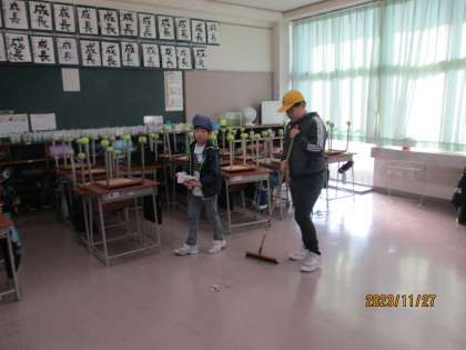 月曜の朝活動は、清掃です。先週の汚れを一掃して、1週間をスタートさせます。子供たち、がんばっています。