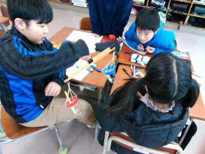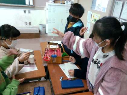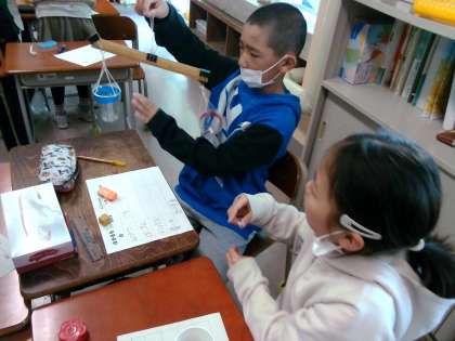 積み木、1円玉、おはじきをもとにして普段使っているものの重さを調べました。