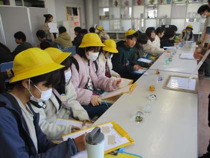 富山ガラス工房へ行ってペーパーウエイトを製作しました。 まずは、どんな形にしようか考えています。