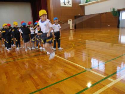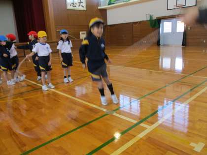 タイミングを合わせて・・・大縄跳びに挑戦です。校長先生にもコツを教えてもらいました!