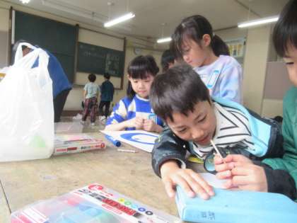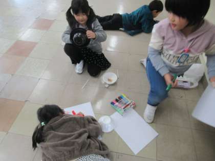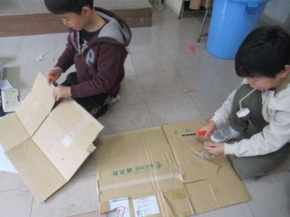 1年生に遊んでもらうために、自分のうごくおもちゃのコーナーを作っています。たくさん試して、楽しいコーナーになるように考えています。